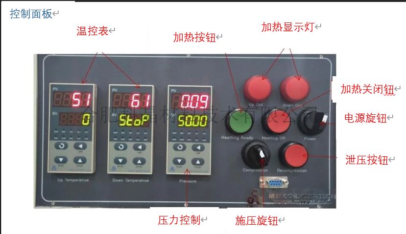 ·2塊加熱板分別由2個溫控儀表獨立控溫,30段程序控溫,控溫精度±1℃ ·溫度控制器具備 PID 自動校準功能、過熱保護以及斷熱電偶保護功能。 ·最高工作溫度:500℃(惰性氣氛或真空環境下) ·最高加熱速率:5℃/min ·控制面板內內置了一款數字壓力計(控制器)。您可以設定所需的壓力值,這樣就能使電動液壓機到達壓力值時自動恒壓。